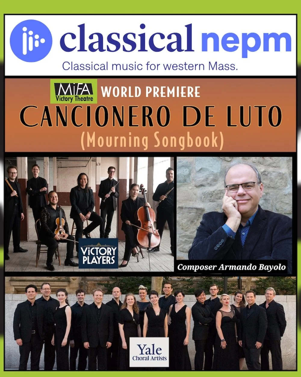 Composer Armando Bayolo’s radio premiere of “Cancionero de luto” (Mourning Songbook) featuring Yale Choral Artists and the MIFA Victory Players. "Cancionero de Luto" was born from a place of profound grief and reflection on the tragedy of mass shootings in America.